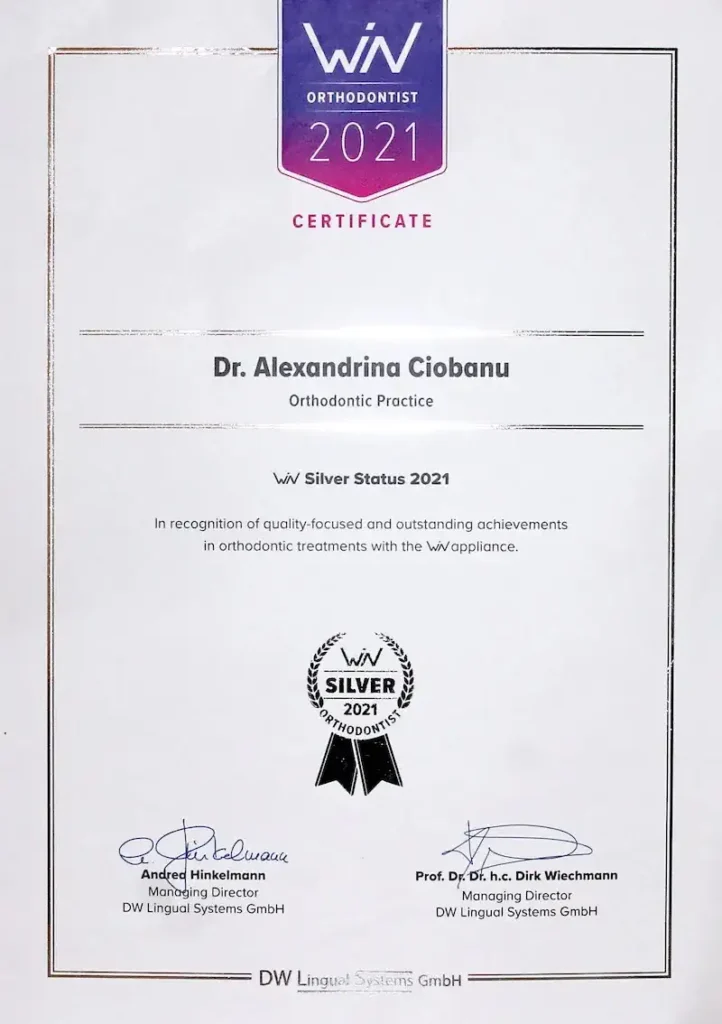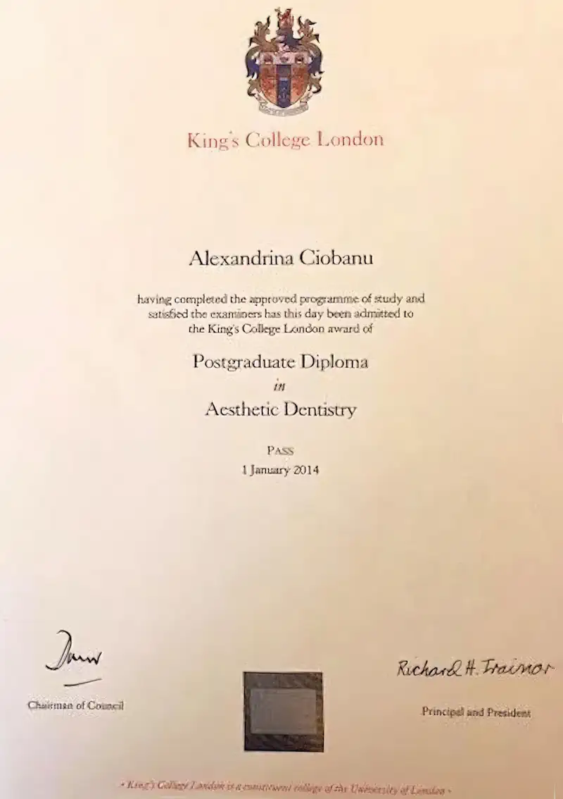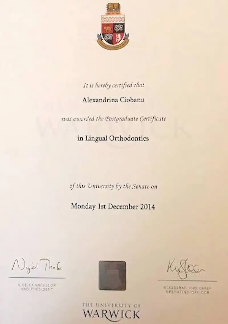 La Dottssa Ciobanu si è laureata in Odontoiatria nel 1998 presso l’Università di Timisoara. Ha ottenuto il Diploma in Ortodonzia presso l’Università di Bucarest nel 2005, il titolo di Eccellenza in Ortodonzia Linguale Sistema Incognito nel 2010 e conseguito il Diploma Universitario in Ortodonzia Linguale nel 2012 presso l’Università di Warwick e il Diploma Universitario in Odontoiatria Estetica presso King’s College London.