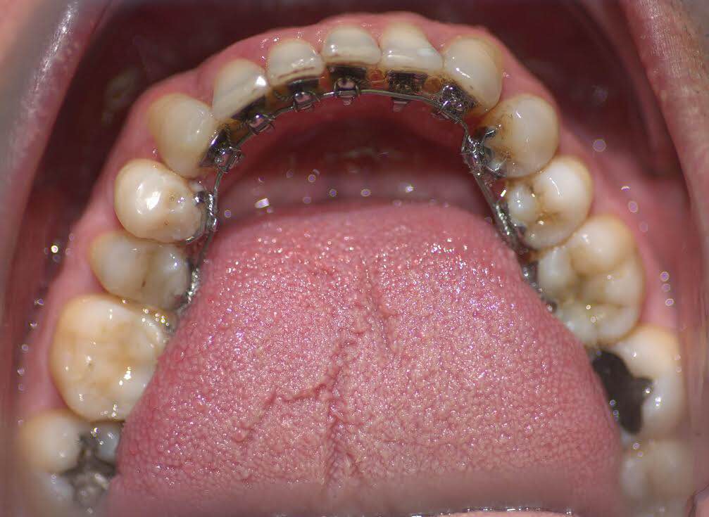 l’apparecchio ortodontico linguale invisibile win in questo caso ha allineato i denti particolarmente affollti, ristabilendo anche la guida canina destra.